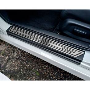 Fabricado em aço inox 304 o kit soleiras, vinil, pedaleiras e descanso de pé além de ajudar a proteger o local onde há o desgaste devido o calçado ficar o tempo todo esfregando, deixará o interior do veículo personalizado e com muito mais estilo.