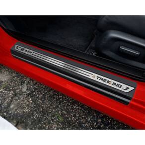 Fabricado em aço inox 304 o kit soleiras, vinil, pedaleiras e descanso de pé além de ajudar a proteger o local onde há o desgaste devido o calçado ficar o tempo todo esfregando, deixará o interior do veículo personalizado e com muito mais estilo.