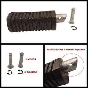 Par Pedaleira Traseira Falcon Bros 125 150 160 Xre Aluminio Injetado A pedaleira traseira da moto, também conhecida como apoio de pé traseiro, serve principalmente para o passageiro apoiar os pés, proporcionando conforto e segurança durante o transporte. Funções detalhadas: - Conforto do passageiro: Permite que o passageiro se apoie e encontre uma posição mais relaxada, especialmente em viagens mais longas. - Segurança: Evita que os pés do passageiro fiquem soltos, reduzindo o risco de contato com partes quentes ou móveis da moto, como o escapamento ou a roda traseira. Material: Aluminio Injetado: - A injeção de alumínio, também conhecida como fundição sob pressão, é um processo de fabricação que utiliza moldes para criar peças metálicas com alta precisão e acabamento, especialmente em larga escala.