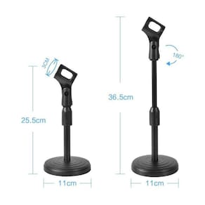 Pedestal Mini Regulável Reto Mesa + Cachimbo Para Microfone-tipo:reto.-base:sólida-sistema de ajuste da altura:rosca.-excelente estabilidade e capacidade de carga.-rosca:3/8 com adaptador para 5/8.-acompanha cachimbo.-montagem simples.-dimensões: Altura:25,5-36,5 cm Diâmetro da base:11 cm -material:aço e plástico-peso:300 g-cor:preto-origem:importado Marca: Aj Som Acessórios Musicais