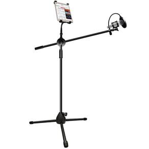 Pedestal para microfone + suporte para tablet + shock mount + pop filter.
