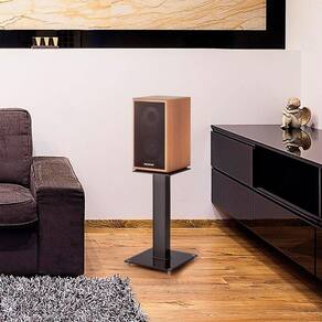 Indicado para caixas acústicas de médio porte, com peso até 10 kg e que possuam base plana possibilitando desta forma que sejam apoiadas sobre a base superior do pedestal.