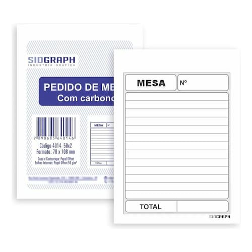 Pedido Comanda De Mesa 50X2 20 Blocos Com Carbono 7,8X10,8Cm