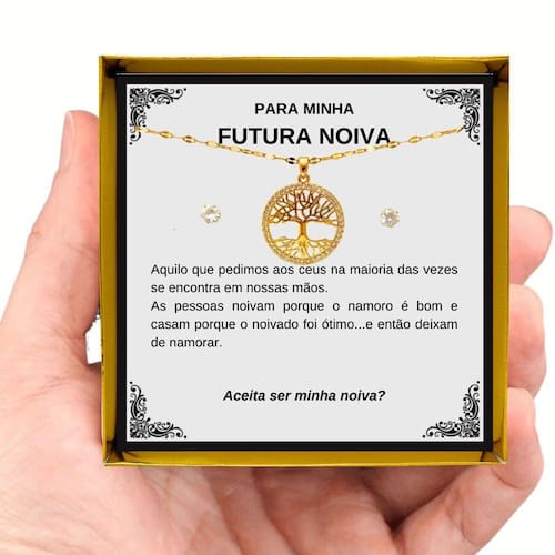 Trata-se de lindo colar composto, pingente árvore da vida e par de brincos (prata legítima 925 não acompanha brincos) + caixinha quadrada com dedicatória.