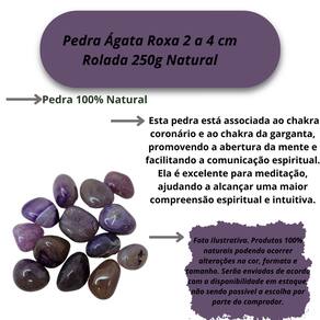 Tipo da Pedra: Ágata Roxa Rolada A Ágata Roxa é uma pedra fascinante, conhecida por suas cores vibrantes que variam de tons suaves de lavanda a roxos mais profundos, criando padrões únicos e hipnotizantes. Esta pedra é altamente valorizada por suas propriedades espirituais e curativas, sendo ideal para aqueles que buscam equilíbrio emocional, clareza mental e conexão com a energia espiritual.