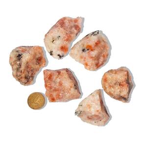 Nome da Pedra: Pedra do Sol Natural (não é sintética). Cor: Tons de laranja avermelhado com rajas douradas cintilantes (fotos reais). Formato: Bruto, sem lapidação, preservando sua energia. Tamanho Aproximado: 40 a 60mm. Peso: Entre 40 a 50g.