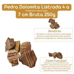 Propriedades Curativas da Dolomita Listrada Bruta: Purificação e Desintoxicação: Esta pedra possui o poder de purificar o ambiente e o campo energético. Ela pode ser usada para limpar energias negativas e promover a desintoxicação, ajudando a restaurar a harmonia tanto no ambiente físico quanto no emocional. Restauração da Vitalidade: A Dolomita Listrada também é benéfica para restaurar a vitalidade e a energia física, especialmente após períodos de exaustão ou cansaço. Ela auxilia no reequilíbrio da energia vital e no restabelecimento da força física e emocional.