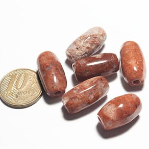 Pedra Hematoide Multicor Furo Longitudinal 20 a 25 mm Tipo B, Lapidado tipo Barril Furado vasado HORIZONTAL ou longitudinaltural a espessura do furo 3 mm aproximadamente para montagem de artesanato Pingente, colar ou Pulseira.