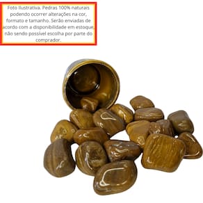 Observações Importantes: As pedras incluídas no pacote possuem tamanhos variando entre 2 a 5 cm. Como o Jaspe Amarelo é uma pedra natural, as formas e tamanhos podem variar ligeiramente, mas todas são polidas para garantir brilho e suavidade. Por se tratar de uma pedra natural, pode haver variações nas cores, tamanhos, formas e peso das pedras. Qualidade Garantida: As pedras de Jaspe Amarelo são cuidadosamente selecionadas para garantir que você receba apenas peças de Natural, ideais para uso em terapias energéticas, meditação ou decoração.