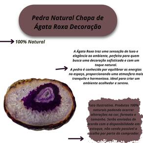 Transforme seu espaço com a beleza única da Pedra Natural Chapa de Ágata Roxa. Com sua coloração vibrante e padrões impressionantes, esta peça é perfeita para adicionar um toque de sofisticação e personalidade à sua decoração. A Ágata Roxa é conhecida por suas propriedades energéticas poderosas, além de ser uma opção encantadora para quem busca um item de decoração exclusivo e natural.
