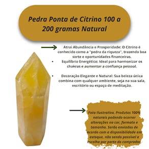 A Pedra Ponta de Citrino 100 a 200 gramas Natural é uma peça única e poderosa, conhecida por suas propriedades energéticas e estéticas. Esta pedra natural possui um brilho radiante e vibrante, ideal para quem busca atrair prosperidade, abundância e equilíbrio energético.