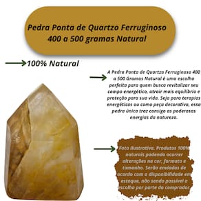 Apresentamos a imponente Pedra Ponta de Quartzo Ferruginoso Natural, com peso entre 400 a 500 gramas, uma peça única e poderosa que traz consigo uma mistura de beleza, energia e propriedades curativas. Com suas inclusões de ferro, esta pedra não só possui uma estética fascinante, mas também é repleta de qualidades energéticas que podem beneficiar corpo e mente. Benefícios da Pedra Ponta de Quartzo Ferruginoso: