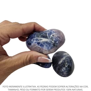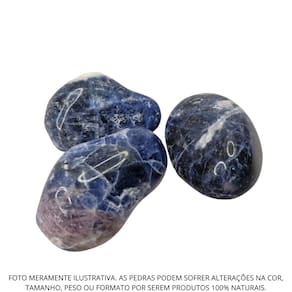 Por ser uma pedra natural, a Sodalita pode apresentar variações nas cores, tamanhos, formatos e peso das pedras. No entanto, garantimos que todas as pedras são cuidadosamente selecionadas por nossos especialistas para oferecer a melhor qualidade e pureza possíveis.