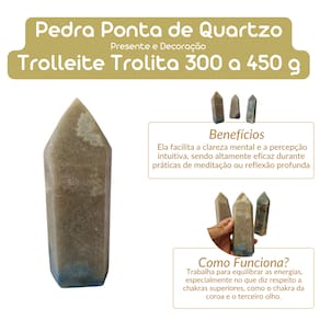 Transforme sua energia com a Pedra Ponta de Quartzo Trolleite Trolita, uma peça única que combina beleza e poder. Com um peso entre 300 e 450 gramas, esta pedra de curas poderosas é ideal para quem busca equilíbrio energético, clareza mental e uma conexão mais profunda com sua espiritualidade. Benefícios Principais: