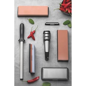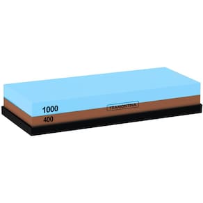 Pedra para Afiar Amolar Faca Dupla Face Granulação 400 e 1000 Profio Tramotina #Lâminas Sempre com Fio #Afiação Rápida e Eficaz #Face com Grãos Mistos Garantia: 90 dias / Peso: 730g / Cor: Azul, Marrom e Preto / Ref: 24029000 Dimensões 18cm (C) x 6cm (L) x 1cm (A) Pedra com Dupla Face: Afiação e Correção. Granulação: 400/1000 Conteúdo: 01 Pedra. Instruções de uso: Verifique o encarte. Material: - Pedra Abrasiva; - Borracha. Deseja suas facas sempre afiadas? Use a pedra de afiar, uma excelente opção para manter suas facas com o fio perfeito. A pedra de amolar tem granulação 400 ideal para desbaste e 1000 para acabamento tornando o fio mais liso. O afiador de facas acompanha um suporte emborrachado antideslizante para maior segurança.