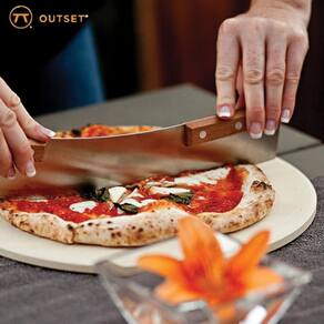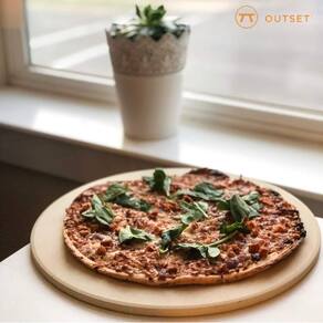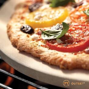 A pedra de cordierita da Outset é o segredo para obter massas com crocância uniforme e acabamento dourado, simulando o efeito autêntico de um forno a lenha no conforto da sua cozinha.