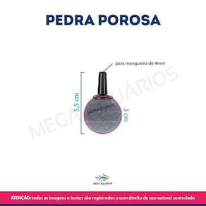 Especificações: - Marca: Mega Aquários - Modelo: Pedra porosa S01 - Material: Composto químico de silício e carbono - Diâmetro: 3cm - Altura total com a conexão: 5,5cm - Peso: 23g - Cor: cinza - Conexão de mangueira de ar: 4mm Marca: Mega Aquarios Ean: 7792647723093
