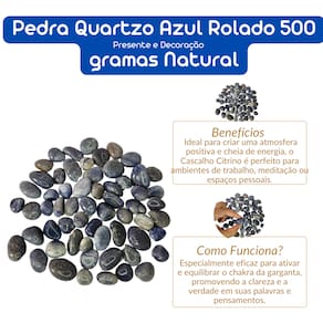 Este pacote de Pedra Cascalho Quartzo Azul Rolado 500g é uma excelente escolha para quem busca não apenas a beleza da pedra, mas também os benefícios energéticos e curativos do Quartzo Azul. Com sua tonalidade suave e polida, essas pedras roladas são perfeitas para decoração, terapias energéticas ou para quem aprecia a energia de pedras naturais.