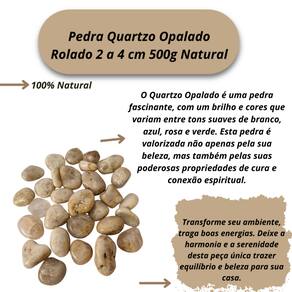 Observações Importantes: Por ser uma pedra natural, o Quartzo Opalado pode apresentar variações nas cores, tamanhos, formatos e peso das pedras. No entanto, garantimos que todas as pedras são cuidadosamente selecionadas por nossos especialistas para oferecer a melhor qualidade e pureza possíveis. Tamanho Aproximado: As pedras incluídas no pacote possuem tamanhos variando entre 2 a 4 cm. Para garantir o peso de 500g, o pacote será composto predominantemente por pedras de Quartzo Opalado de excelente qualidade, podendo conter também pedras de outros tipos de Quartzo ou cristais de qualidade similar, assegurando o peso anunciado. Qualidade Garantida: As pedras são polidas e selecionadas especialmente para colecionadores e entusiastas de cristais.