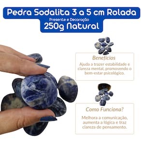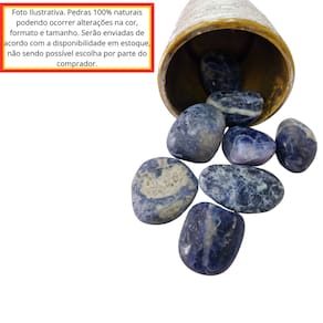 Características do produto: - Tipo da pedra: Sodalita Azul Rolada , pedra com excelente qualidade, muito utilizada para coleção de pedras selecionadas. - Peso do pacote equivalente a compra: 250 gramas (peso garantido) - Tamanho aproximado: O pacote será composto predominantemente de pedras com tamanho entre 3 a 5 cm e para garantir o peso anunciado serão acrescidas outras pedras sodalita da mesma qualidade e com tamanhos variados compondo o peso de 250 gramas do pacote. - Por se tratar de pedra natural e legítima, pode ocorrer variação de cores, tamanho, formato e peso em cada pedra. Porém, ressaltamos a qualidade e pureza das pedras que são selecionadas individualmente por nossos especialistas. - Ficamos à disposição para esclarecer qualquer dúvida antes ou após a realização da compra.