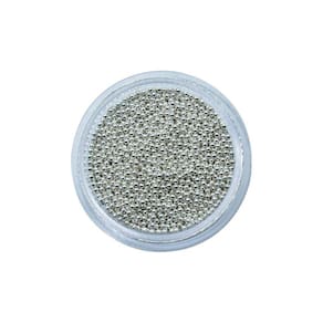 Contém: 01 - Potinho com 20 Gramas de Pedrarias Caviar de Metal Prata 1 mm