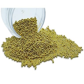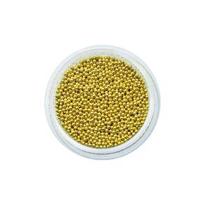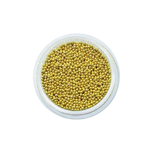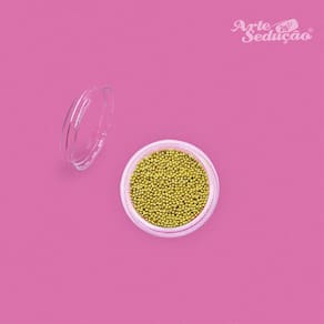 Contém: 01 - Potinho com 20 Gramas de Pedrarias Caviar de Metal Dourado 1 mm