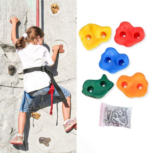 Material: plástico\ nEmbalagem de 18 peças de plástico para paredes de escalada\ nComprimento: aproximadamente 10 ~ 11,5 cm Largura: aproximadamente 7 ~ 9,5 cm Feito de plástico não tóxico e inodoro resistente a UV que foi adotada pela tecnologia de moldagem por injeção, este produto é muito durável e colorido. Design durável: as pinças de escalada para crianças são feitas com uma construção de plástico durável e diversão não tóxica ao ar livre no verão: crianças ativas são crianças saudáveis. Essas pedras de escalada são uma ótima maneira de fazer as crianças escalarem e brincarem ao ar livre. Desenvolvimento da habilidade de aderência/movimento\ nSuporta até 70 quilos aproximadamente.\ n\ nNota: ele só pode ser instalado na superfície da placa de madeira, não é adequado para a parede ou superfície de concreto.