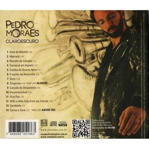 Com o trabalho ClaroEscuro, o compositor Pedro Moraes, demonstra ser um habilidoso ourives para esculpir sua música com elementos harmônicos, melódicos, rítmicos e poéticos do que entendemos como canção. Apesar de ser o primeiro disco oficial da carreira solo do compositor, é necessário constatar que Pedro Moraes já tem uma sólida trajetória na música, o que confere a este trabalho uma maturidade rara para quem está debutando no mercado fonográfico brasileiro. Este é certamente um disco que nos abre muitas questões pra pensar e refletir, mas como o melhor da música brasileira, podemos ter a certeza que sua grande qualidade ainda é poder simplesmente escutá-lo, deixando-o que fale por si mesmo, através desse jogo de luz, contraluz, de cores, sabores e de muitas outras sensações. É isso que Pedro Moraes nos oferece no seu multicolorido ClaroEscuro. Marca: Não Informado Ean: 7898085051863