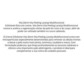 Esfoliante Peeling De Laranja Vita Derm 200G Possui Forte Abrasão E Ação Adstringente, Conferida Pelo Óleo Essencial De Laranja. Limpa Profundamente E Remove As Células Mortas, Favorecendo A Dos Ativos Específicos, Para Ser Utilizado Nos Tratamentos Estéticos. Produto Hipoalergênico Não Testado Em Animais. Marca: Não Informado