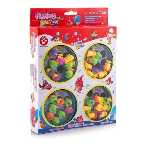 Pode conter partes pequenas que podem ser engolidas e perigosas. Itens Inclusos: 01 Pega Peixe Fishing Game 32 Peixes 04 Varas de pesca Necessário pilha AA (não incluso)