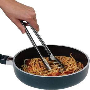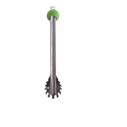 Um dos braços da pinça é uma colher e graças a esta construção se torna prático para utilização em espaguete e outras massas.