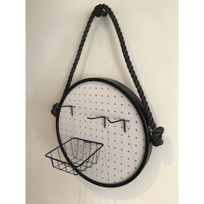 Pegboard Adnet Preto Corda Preta Fundo Branco 40 Cm Redondo