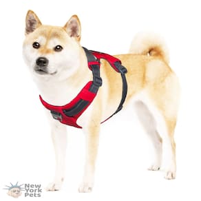 Este arnês para cães apresenta material reflexivo para aumentar a visibilidade, bem como um crachá para informações de contato de emergência do animal de estimação e do proprietário. Disponível em vários tamanhos.