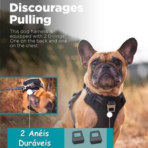 Material refletivo: O arnês frontal para cães Boulder contém material reflexivo para maior visibilidade e segurança.