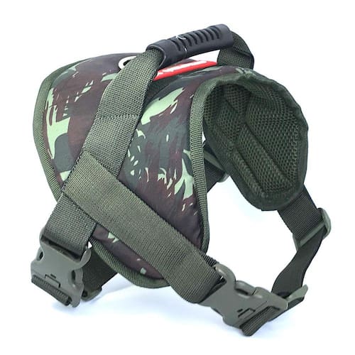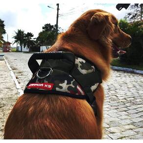 Peitoral colete camuflado- similar aos usados por cães de polícia em aeroportos nos eua e canadá.- fecho engate rápido com trava de segurança que abre somente se apertar botão.- fecho de nylon injetado que resiste até 60 quilos.- regulagem traseira e frontal deixando o peitoral bem ajustado no seu cão.- fitas em nylon resistente e confortáveis com 4 cm de largura.- alça nas costas para facilitar a cotenção de seu cão.- nossos produtos são feitos com costuras reforçadas e bem acabadas.Tamanho:M entre 15 e 27 quilosMedidada do torax mínima 67 cm e máxima 85 cm ( medir passando a fita pelas axílas circulando pelas costas ).Raças ideais: Pitbull, rottweiler, pastor alemão, malinois, pastor suisso, doberman, boxer, pastor australiano, blue heeler, golden retriever, labrador, bulldog inglês e outras raças de tamanho m.Canadá k9 acessórios tem seus produtos testado por profissional de adestramento canadense no brasil. Marca: Canada K9