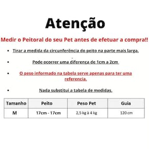 Sempre verificar se a medida do seu animal de estimaçao para ter certeza que a medida desejada vai servir