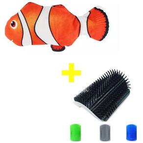 Peixe Eletrico Brinquedo Gato Interativo Simulação + Usb + Auto Escova Massageadora De Parede Tira Pelo Gatos + Catnip - Cor: Nemo