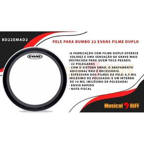Pele para bumbo 22'' evans sistema emad bd22emad2 Descrição do produto: Pele evans emad2 bd22emad2 22 filme duplo para bumbo transparente A evans oferece opções incomparáveis de peles específicas para bumbo, desenvolvidas especialmente para que ajustes precisos tornem-se realidade. Para todo e qualquer som ou estilo musical, existe uma pele evans adequada, construída com combinações de filme simples, duplo ou dotada de anéis internos, orifícios de ventilação e reforços centrais. A pele batedeira para bumbo a emad2 possui um filme externo de 6,5 mil 0,17mm e um interno de 10 mil 0,25mm de espessura que realçam o ataque, o foco e a durabilidade. A fabricação com filme duplo oferece solidez e uma sensação de grave mais destacada para quem toca pesado. Com o sistema emad, o abafamento adicional não é necessário. Marca: evans Código do produto: bd22emad2 Modelo: emad2 Tamanho: 22 Tipo do filme da pele: transparente Filme duplo: sim Espessura dos filmes da pele: 6,5 mil milésimo de polegada e um interno de 10 mil milésimo de polegada : 90 dias Marca: Não Informado