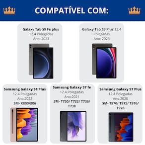 Galaxy tab s9 fe plus 12.4 polegadas ano: 2023 Galaxy tab s9 plus 12.4 polegadas ano: 2023 Samsung galaxy s8 plus 12.4 polegadas ano:2022 sm- x800/806 Samsung galaxy s7 fe 12.4 polegadas ano:2021 sm- t730/ t733/ t736/ t738 Samsung galaxy s7 plus 12.4 polegadas ano:2020 sm- t970/ t975/ t976/ t978