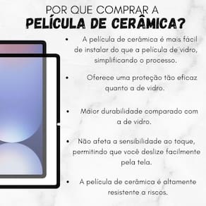 R: graças à sua resistência avançada a arranhões e impactos leves, a película de cerâmica ajuda a proteger a tela do tablet, prolongando sua vida útil e evitando danos indesejados.