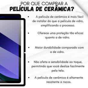 Película de cerâmica para tablet samsung s9 11 x710 x716 Cor: transparente com borda proteja a tela do seu tablet com a incrível película de cerâmica, a solução definitiva para manter seu dispositivo impecável. ------------------ Atenção ------------------ Compatível com: tablet samsung tab s9 11 x710 x716. Modo de uso: 1- limpe a tela do seu tablet, após esta limpa remova uma parte da película protetora e centralize a película de cerâmica no tablet. Com a ajuda de um cartão, sem fazer força deslize para firmar por todo comprimento. Caso apareçam bolhas, empurre novamente em direção às bordas do tablet. caso tenha dificuldade você pode nos enviar mensagem no chat da compra Que iremos enviar um vídeo auxiliando na aplicação. ------------------ ------------------ a película de cerâmica afeta a sensibilidade ao toque R: não, a película é projetada para não interferir na sensibilidade ao toque dos dispositivos. Elas possuem uma camada ultrafina que mantém a capacidade de resposta da tela intacta, permitindo que você utilize o dispositivo normalmente sem problemas de perda de sensibilidade ao toque. por que devo escolher uma película de cerâmica para o meu tablet R: a película de cerâmica oferece uma proteção avançada contra arranhões, mantendo a tela do seu tablet livre de danos e preservando sua clareza de imagem. como a película de cerâmica contribui para a longevidade do tablet R: graças à sua resistência avançada a arranhões e impactos leves, a película de cerâmica ajuda a proteger a tela do tablet, prolongando sua vida útil e evitando danos indesejados. a película de cerâmica é compatível com o uso de canetas stylus posso usar a capa com película A capa não levanta a película R: sim, é possível usar a capa com a película. A capa possui recortes precisos ao qual não se levanta a película. ------------------ Especificações ------------------ Material: cerâmica Compatível com: tablet samsung tab s9 11 x710 x716. ------------------ Conteúdo ------------------ 1x película de cerâmica 1x kit limpeza. Anúncio referente a acessórios Tablet não incluso - qualidade garantida. - atendimento qualificado. - enviamos para todo o brasil. - compra garantida. - despachamos em até 1 dia útil após confirmação do pagamento Garantimos a devolução por arrependimento em até 7 dias, após o recebimento e de 15 dias contra defeitos de fabricação. Homologação Anatel: 000521203111 Marca: Não Informado Ean: 7794119390369