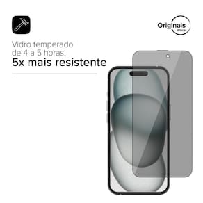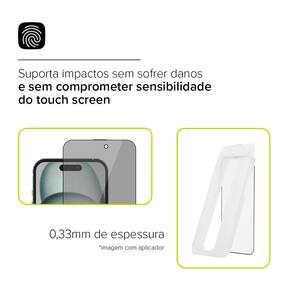 Especificações Película de vidro temperado ansparente com borda Filtro polarizador que limita a visão lateral da tela Matéria-prima japonesa (Asahi Glass) Espessura de 0,33mm Protege a tela contra riscos e pequenas batidas Não afeta a sensibilidade da tela