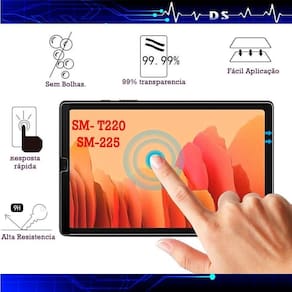 Pelicula De Vidro Para Tablet Galaxy Tab A7 Lite 8.7 T220 T225 Película de Vidro Compatível para: Samsung Galaxy Tab A7 Lite 8.7'' Polegadas SM- T220 e SM- T225 Película de vidro temperado com alta resistência e uma espessura de 0.3 mm, possuí proteção oleofóbica - Resistente a marcas de digitais e à oleosidade. 3x mais resistente que as películas de filme e capaz de suportar até mesmo objetos afiados. Uso extremamente seguro - Caso a película quebre, as partículas formadas não são afiadas e ficam aderidas à camada adesiva de silicone, tornando-o muito mais seguro que os produtos similares no mercado. Não interfere na usabilidade, toque e sensibilidade da tela.O pacote contém:01 Película Glass Premium01 Kit Limpeza e Aplicação