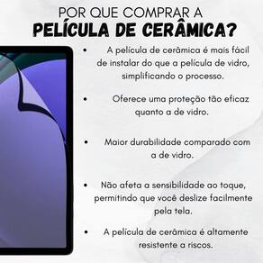 Película fosca de cerâmica para samsung s7 fe 12.4 t735 t870 Cor: fosca proteja a tela do seu tablet com a incrível película de cerâmica, a solução definitiva para manter seu dispositivo impecável. ------------------ Atenção ------------------ Compatível com: Tab samsung s7+ / s7 fe / s8+ / s9+ / s9 fe+ 12.4 Modo de uso: 1- limpe a tela do seu tablet, após esta limpa remova uma parte da película protetora e centralize a película de cerâmica no tablet. Com a ajuda de um cartão, sem fazer força deslize para firmar por todo comprimento. Caso apareçam bolhas, empurre novamente em direção às bordas do tablet. caso tenha dificuldade você pode nos enviar mensagem no chat da compra Que iremos enviar um vídeo auxiliando na aplicação. ------------------ ------------------ a película de cerâmica afeta a sensibilidade ao toque R: não, a película é projetada para não interferir na sensibilidade ao toque dos dispositivos. Elas possuem uma camada ultrafina que mantém a capacidade de resposta da tela intacta, permitindo que você utilize o dispositivo normalmente sem problemas de perda de sensibilidade ao toque. por que devo escolher uma película de cerâmica para o meu tablet R: a película de cerâmica oferece uma proteção avançada contra arranhões, mantendo a tela do seu tablet livre de danos e preservando sua clareza de imagem. como a película de cerâmica contribui para a longevidade do tablet R: graças à sua resistência avançada a arranhões e impactos leves, a película de cerâmica ajuda a proteger a tela do tablet, prolongando sua vida útil e evitando danos indesejados. a película de cerâmica é compatível com o uso de canetas stylus posso usar a capa com película A capa não levanta a película R: sim, é possível usar a capa com a película. A capa possui recortes precisos ao qual não se levanta a película. ------------------ Especificações ------------------ Material: cerâmica Compatível com: tab samsung s7+ / s7 fe / s8+ / s9+ / s9 fe+ 12.4 ------------------ Conteúdo ------------------ 1x película de cerâmica 1x kit limpeza. Anúncio referente a película Tablet não incluso - qualidade garantida. - atendimento qualificado. - enviamos para todo o brasil. - compra garantida. - despachamos em até 1 dia útil após confirmação do pagamento Garantimos a devolução por arrependimento em até 7 dias, após o recebimento e de 15 dias contra defeitos de fabricação. Homologação Anatel: 000521203111 Marca: Não Informado Ean: 7794741792579