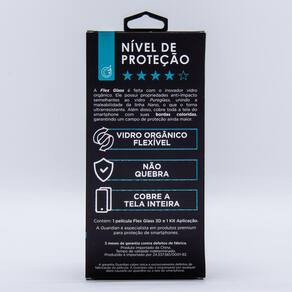 Flexglass é a pioneira da família Flex. Feita de vidro orgânico, vem como uma alternativa para o vidro puro. Possui propriedades similares e anti-impacto, porém é flexível e possui bordas coloridas que protegem maior campo da tela. Ela não quebra, flexível, toque , proteção, , contra riscos, cobre toda a tela, bordas coloridas. Características gerais: Possui bordas coloridas que protegem toda a tela do aparelho e a imitam. Conta com touch que traz a sensação de estar tocando na própria tela do aparelho. Feita de um material ao vidro, porém flexível. Protege contra impactos médios a altos. Pontos positivos: A película não quebra com o uso; Suporta pequenos e médios impactos; Tecnologia Neoflex; Possui maleabilidade da linha Nano e ultra resistência da linha Pureglass; Pontos negativos: Não possui super proteção contra altos impactos, apesar de ser um material muito potente. Proteção inferior a linha Pureglass. Acompanha o produto: 1 Sachê de limpeza; 1 Flanela; 1 Adesivo anti-poeira; 1 Cartão aplicador;
