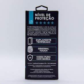 Da família Glass, só pode esperar super proteção. A Pureglass 3D tem esse nome porque possui bordas coloridas com efeito 3D, mesmo. Faz com que você tenha a sensação de estar sem película. É feita de vidro puro, então você já sabe: qualidade superior sempre. Confie nesse vidro temperado: proteção contra riscos e altos impactos, cobrindo toda a tela com bordas coloridas. A película Pureglass 3D foi produzida com vidro puro duplamente temperado. Isso significa um vidro de alta pureza submetido até 10h de calor em sua produção, trazendo ultra resistência. Suporta até 10x mais impacto que outras películas. Pontos positivos: Película 100% vidro puro; Alta resistência a impactos; Bordas coloridas e touch que imitam o aparelho; Sistema 3D com bordas que dificultam o descolamento da película e imitam a tela do aparelho. Acompanha o produto: 1 Sachê de limpeza; 1 Flanela; 1 Adesivo anti-poeira; 1 Cartão aplicador