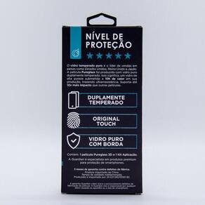 Da família Glass, só pode esperar super proteção. A Pureglass 3D tem esse nome porque possui bordas coloridas com efeito 3D, mesmo. Faz com que você tenha a sensação de estar sem película. É feita de vidro puro, então você já sabe: qualidade superior sempre. Confie nesse vidro temperado: proteção contra riscos e altos impactos, cobrindo toda a tela com bordas coloridas. A película Pureglass 3D foi produzida com vidro puro duplamente temperado. Isso significa um vidro de alta pureza submetido até 10h de calor em sua produção, trazendo ultra resistência. Suporta até 10x mais impacto que outras películas. Pontos positivos: Película 100% vidro puro; Alta resistência a impactos; Bordas coloridas e touch que imitam o aparelho; Sistema 3D com bordas que dificultam o descolamento da película e imitam a tela do aparelho. Acompanha o produto: 1 Sachê de limpeza; 1 Flanela; 1 Adesivo anti-poeira; 1 Cartão aplicador