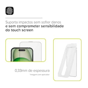 Especificações Película de vidro temperado Transparente com borda Matéria-prima japonesa (Asahi Glass) Espessura de 0,33mm Protege a tela contra riscos e pequenas batidas Não afeta a sensibilidade da tela Toque aveludado Antibrilho, perfeita para jogos Aplicador individual