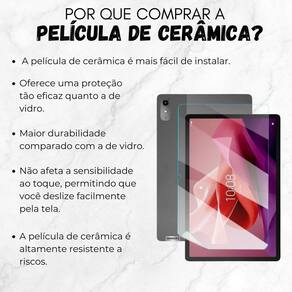 Película protetora premium para lenovo p12 - 12.7 polegadas Cor: fosco Proteja a tela do seu tablet com a incrível película de cerâmica, a solução definitiva para manter seu dispositivo impecável. Já a versão fosca reduz o reflexo da luz, melhora a visibilidade e contribui para menor desgaste ocular, podendo ler muito mais tempo. ------------------ Atenção ------------------ Compatível com tablet lenovo p12 12.7 polegadas tb371fc 2024 . Modo de uso: 1- limpe a tela do seu tablet, após esta limpa remova uma parte da película protetora e centralize a película de cerâmica no tablet. Com a ajuda de um cartão, sem fazer força deslize para firmar por todo comprimento. Caso apareçam bolhas, empurre novamente em direção às bordas do tablet. Caso tenha dificuldade você pode nos enviar mensagem no chat da compra Que iremos enviar um vídeo auxiliando na aplicação. ------------------ ------------------ A película de cerâmica afeta a sensibilidade ao toque R: não, a película é projetada para não interferir na sensibilidade ao toque dos dispositivos. Elas possuem uma camada ultrafina que mantém a capacidade de resposta da tela intacta, permitindo que você utilize o dispositivo normalmente sem problemas de perda de sensibilidade ao toque. Por que devo escolher uma película de cerâmica para o meu tablet R: a película de cerâmica oferece uma proteção avançada contra arranhões, mantendo a tela do seu tablet livre de danos e preservando sua clareza de imagem. Como a película de cerâmica contribui para a longevidade do tablet R: graças à sua resistência avançada a arranhões e impactos leves, a película de cerâmica ajuda a proteger a tela do tablet, prolongando sua vida útil e evitando danos indesejados. A película de cerâmica é compatível com o uso de canetas stylus Posso usar a capa com película A capa não levanta a película R: sim, é possível usar a capa com a película. A capa possui recortes precisos ao qual não se levanta a película. ------------------ Especificações ------------------ Material: cerâmica. Compatível com tablet lenovo p12 12.7 polegadas tb371fc 2024 . ------------------ Conteúdo ------------------ 1x película cerâmica. 1x kit limpeza. Anúncio referente a película Tablet não incluso - qualidade garantida. - atendimento qualificado. - enviamos para todo o brasil. - compra garantida. - despachamos em até 1 dia útil após confirmação do pagamento Garantimos a devolução por arrependimento em até 7 dias, após o recebimento e de 15 dias contra defeitos de fabricação. Marca: Não Informado
