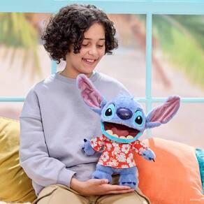 O alien mais fofo da galáxia chegou para animar suas brincadeiras O Disney Stitch Havaiano Animatrônico combina marionetagem e robótica de forma inovadora, oferecendo uma experiência interativa única. Mais de 50 frases em Tantalog, a língua nativa do Stitch. Movimentos realistas: boca e cabeça se movem de forma sincronizada, 3 botões para mudar os humores travesso ou rabugento e ativar sons icônicos 30 cm de altura, ideal para abraçar e brincar. Feito com materiais super macios e ricos em detalhes, parece que saiu diretamente das telas para a sua casa Recrie cenas dos filmes, invente histórias e desenvolva a imaginação com esse brinquedo incrível.